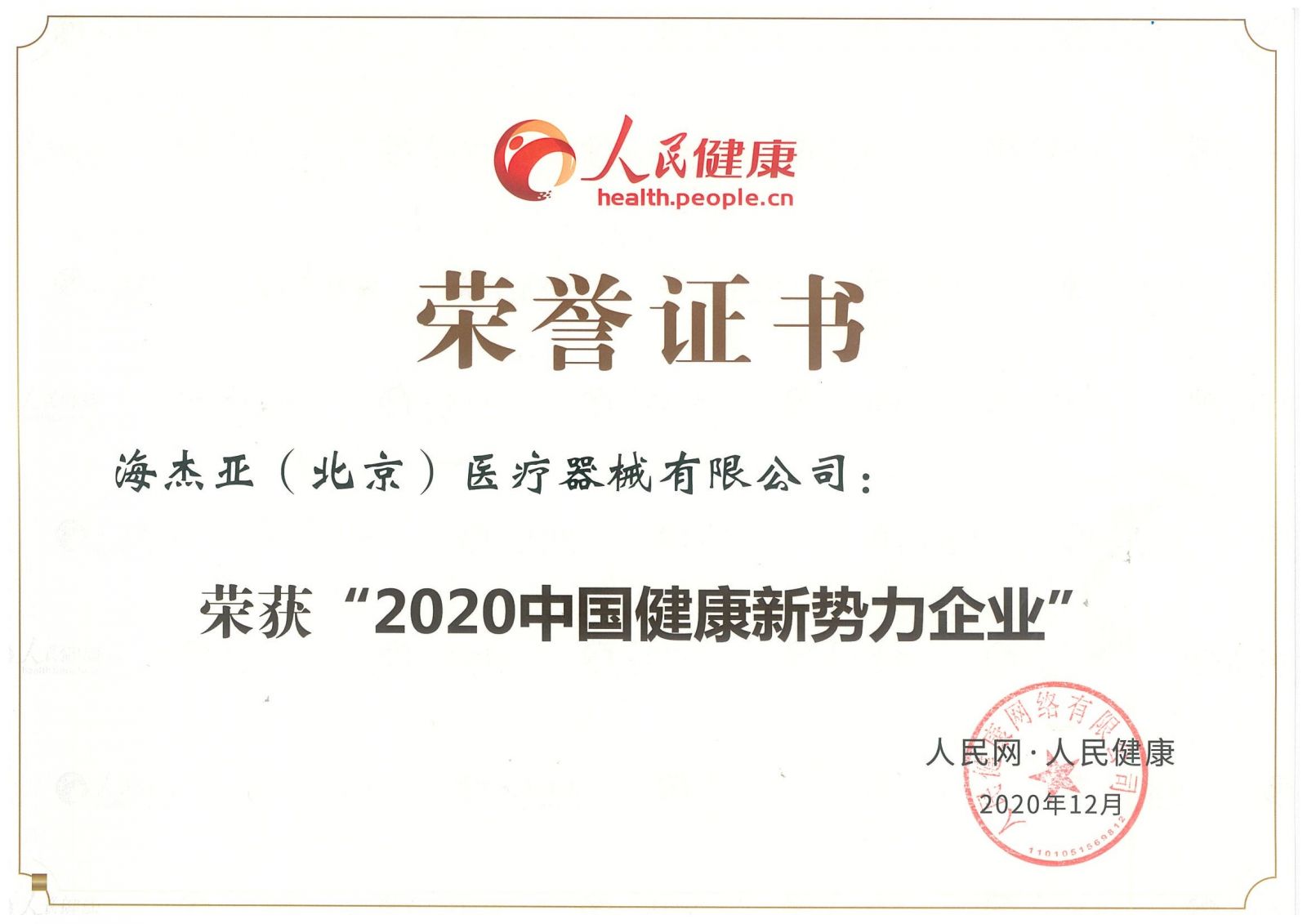 會議公布了2020中國健康新勢力企業(yè)征集活動結果,海杰亞榮獲“2020中國健康新勢力企業(yè)”。